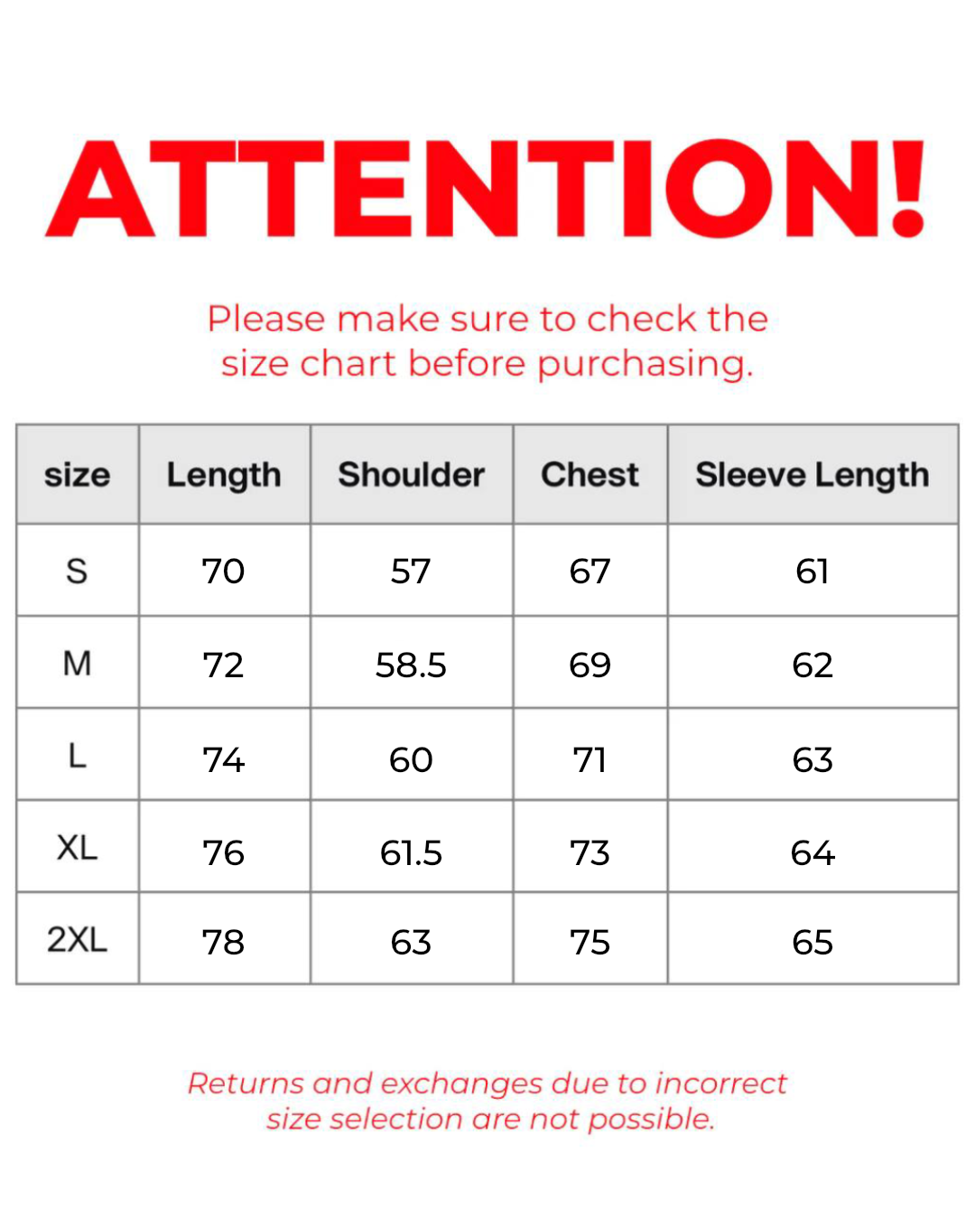 | Sleeve length | 24.0 | 61 | 24.4 | 62 | 24.8 | 63 | 25.2 | 64 | 25.6 | 65 |